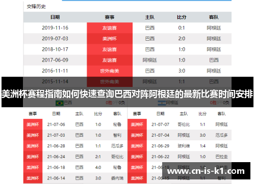 以下是一篇关于“美洲杯赛程指南如何快速查询巴西对阵阿根廷的最新比赛时间安排”的详尽文章,先有摘要,再从四个方面详细阐述,最后总结归纳。若你需要,我也可以做视频或图表形式的快速查询指南。---摘要:本文...